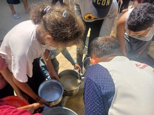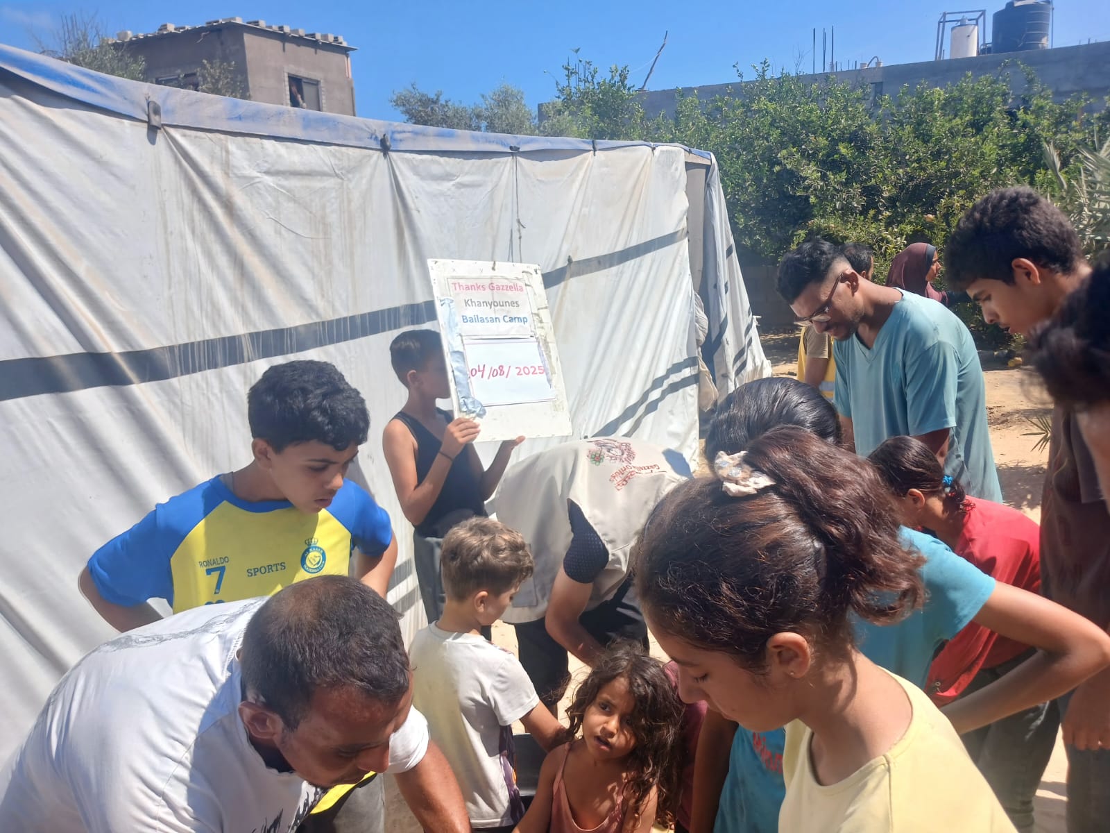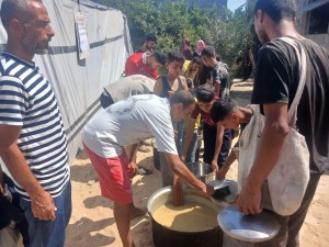 Lunedì 4/8/2025, i volontari di Gazzella a Khan Younes hanno cucinato 300 litri di minestra di lenticchie e riso e distribuito circa 450 porzioni nella tendopoli diBailasan in via Rony a Khan Younes.
