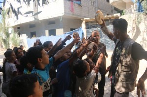 Distribuzione pane e acqua a Nuseirat, Abu Tarbush, 7/9/25