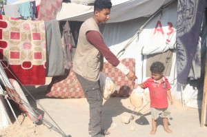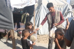 Lunedì 15/9/25 abbiamo fatto 1500 pani che abbiamo distribuito agli sfollati nella tendopoli nella zona di al-Banna.