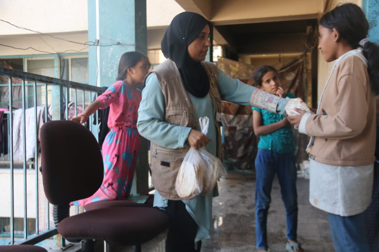 Martedì 9/9/25 abbiamo fatto 1500 pani che abbiamo distribuito agli sfollati che hanno occupato una scuola elementare nel centro di Nuseirat.