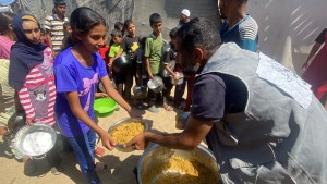 Distribuzione di pasti caldi a Mawasi, 17/9/25