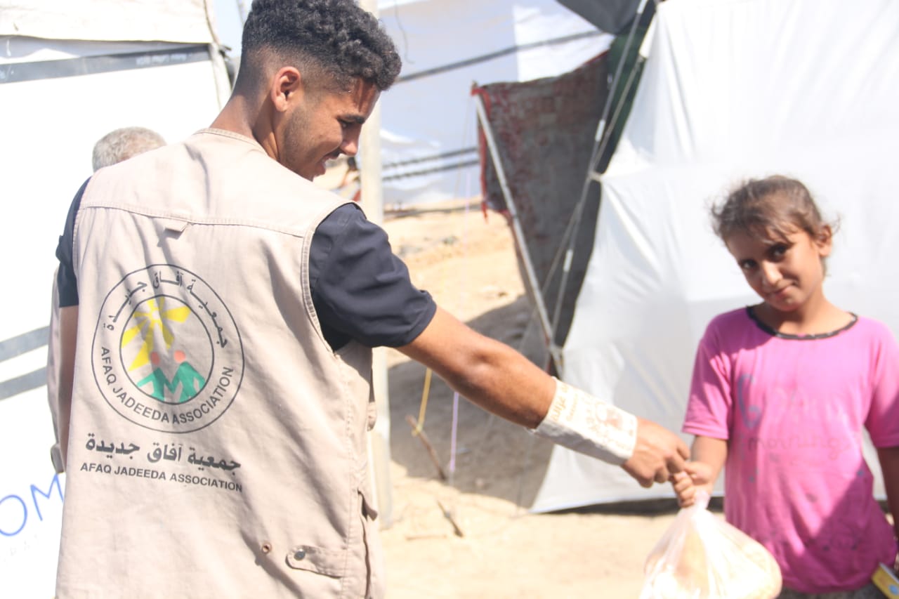 Lunedì 22/9/25 abbiamo fatto 1200 pani che abbiamo distribuito ai nuovi sfollati nella tendopoli sorta nella zona di al-Mufti.