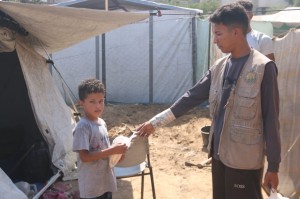 Abbiamo distribuito 5.000 litri d’acqua potabile al punto di distribuzione davanti alla sede dell’associazione Afaq nel campo profughi nuovo di Nuseirat.