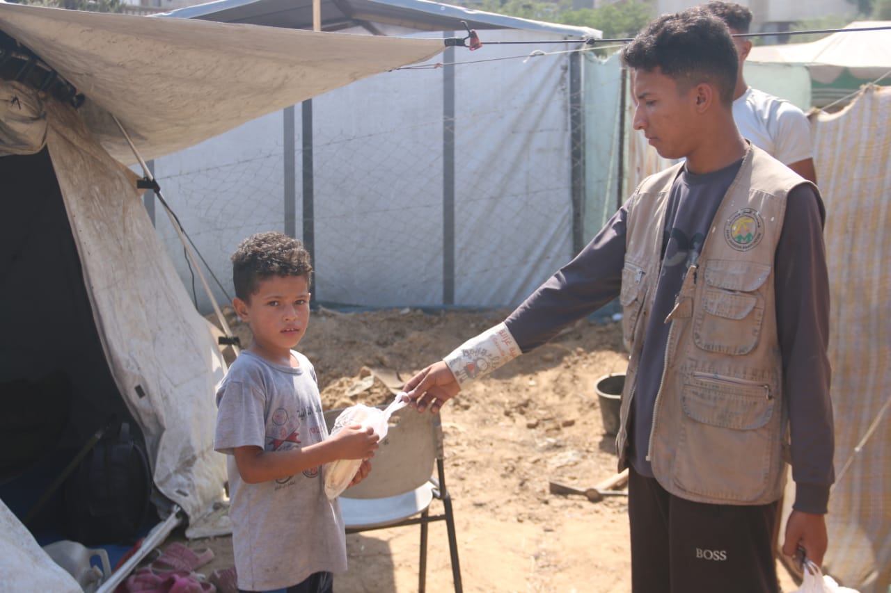 Mercoledì 24/9/25 abbiamo fatto 1250 pani che abbiamo distribuito agli sfollati nella tendopoli sorta nella zona di al-Mufti.