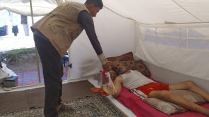 Abbiamo distribuito 8.000 litri d’acqua potabile in due punti di distribuzione davanti alla sede dell’associazione Afaq nel campo profughi nuovo di Nuseirat.