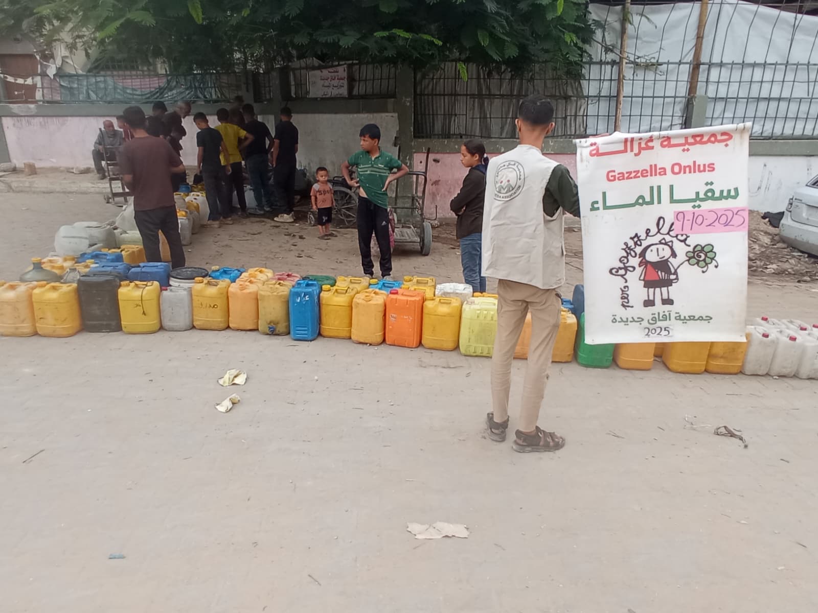 Giovedì 9/10/25 abbiamo fatto 1250 pani che abbiamo distribuito agli sfollati nella tendopoli di Abu Muhadi. Abbiamo distribuito 5.000 litri d’acqua potabile nel punto di distribuzione davanti alla sede dell’associazione Afaq nel campo profughi nuovo di Nuseirat.