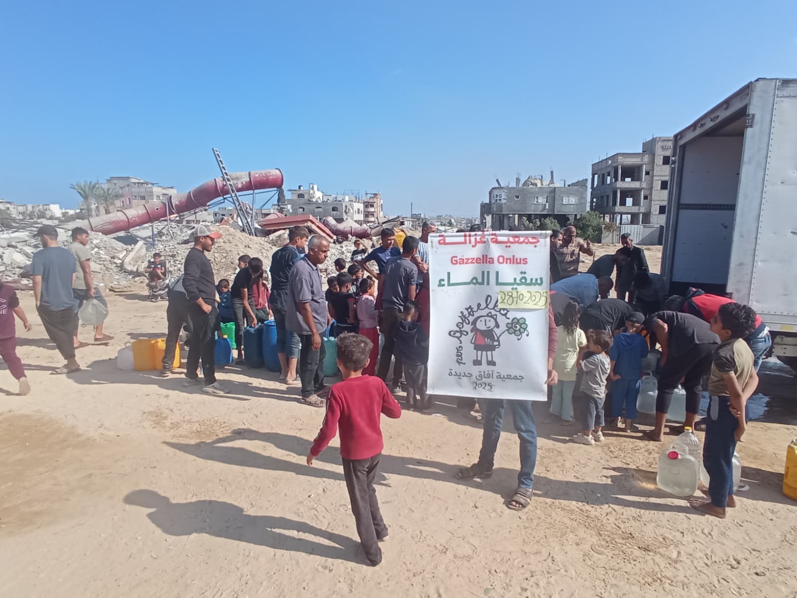 Martedì 28/10/25 abbiamo distribuito 7.000 litri d’acqua potabile di cui 3.000 al punto di distribuzione davanti alla sede dell’associazione Afaq nel campo profughi”Nuovo” di Nuseirat e 4000 agli sfollati nella zona di al-Mufti.