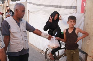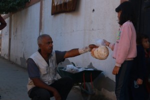 Abbiamo fatto 1500 pani che abbiamo distribuito agli sfollati nel quartiere di al-Rahma.