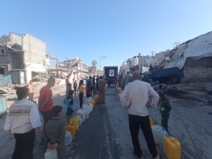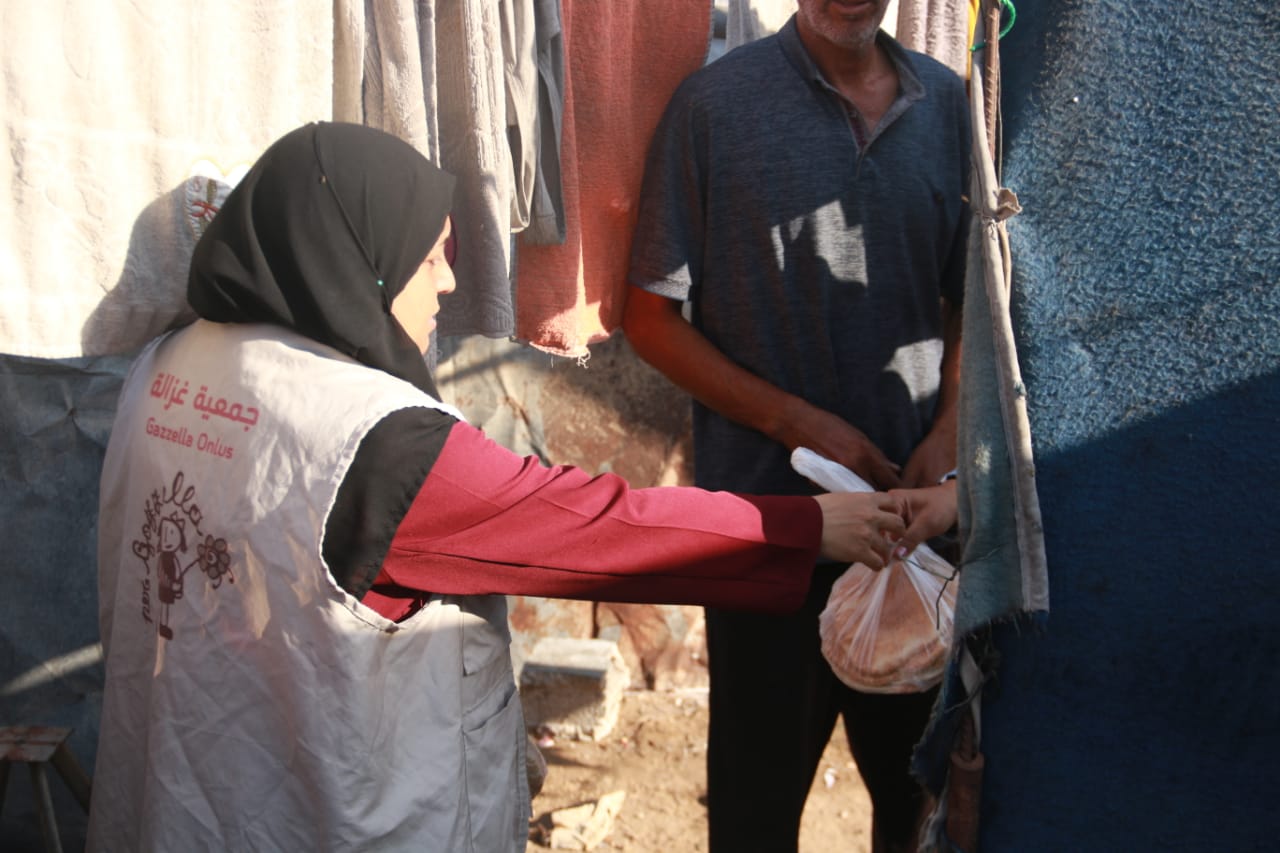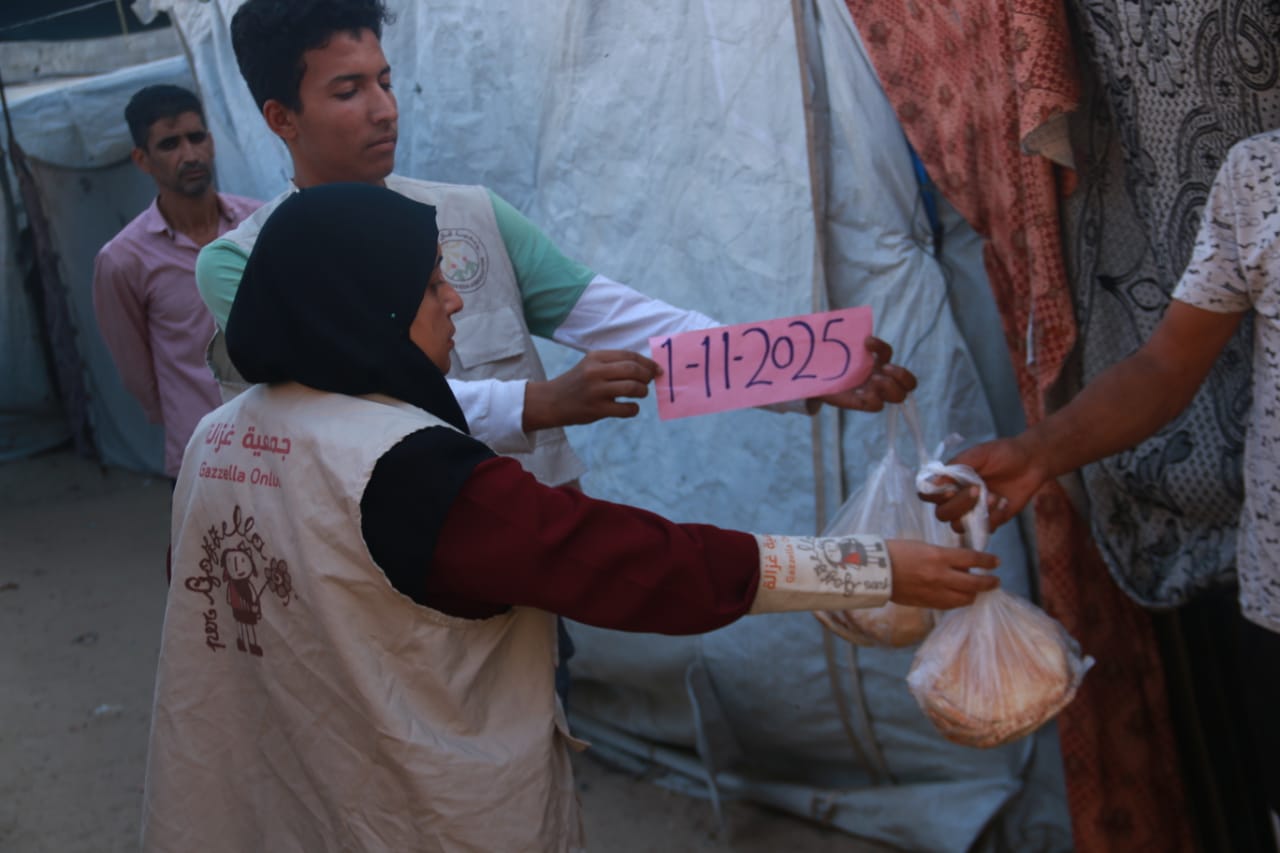 Sabato I/11/25 abbiamo fatto 2000 pani che abbiamo distribuito agli sfollati a Nuseirat. Abbiamo distribuito 8.000 litri d’acqua potabile di cui 4.000 al punto didistribuzione davanti alla sede dell’associazione Afaq nel campo profughi “Nuovo” di Nuseirat e 4000 agli sfollati nella zona di Abu Hazin.