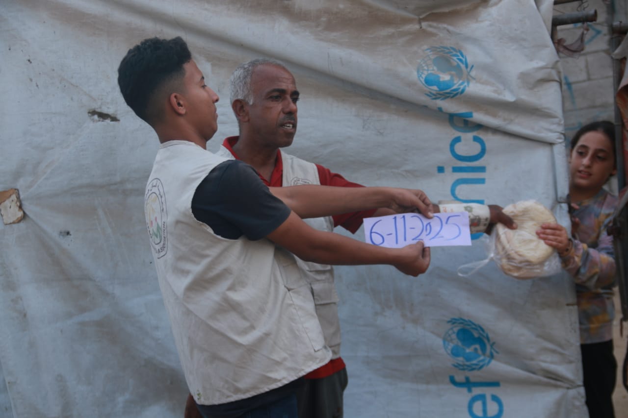 Distribuzione pane e acqua a Nuseirat, 6/11/25