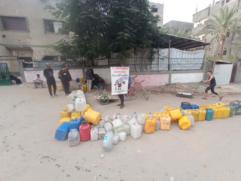 Abbiamo distribuito 4.000 litri d’acqua potabile al punto didistribuzione davanti alla sede dell’associazione Afaq nel campo profughi “Nuovo” di Nuseirat.