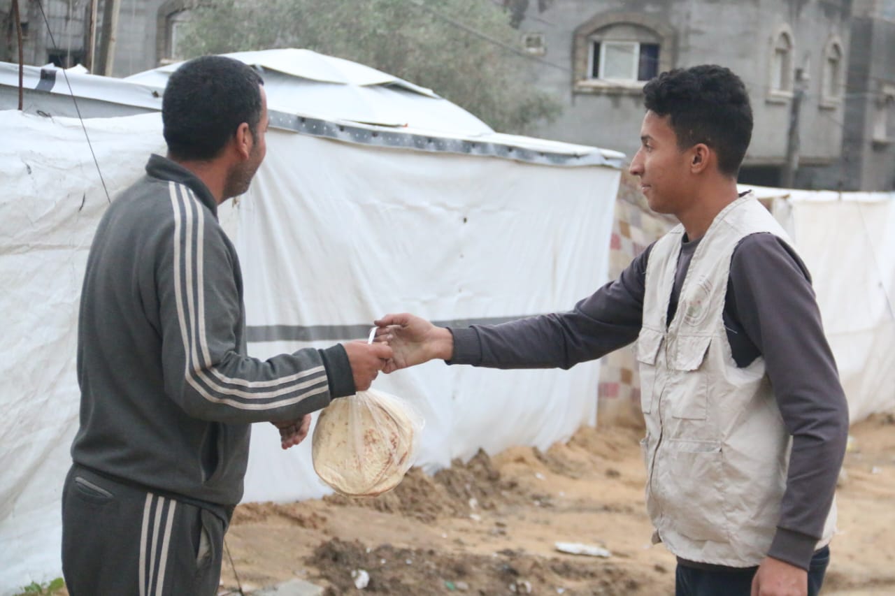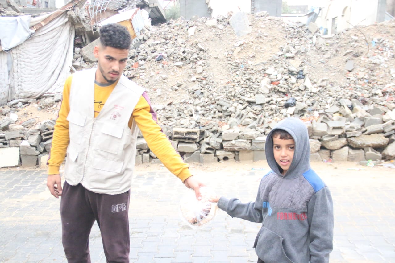 Abbiamo fatto 1500 pani che abbiamo distribuito nel quartiere al-Rahma del campo “Nuovo” a Nuseirat .