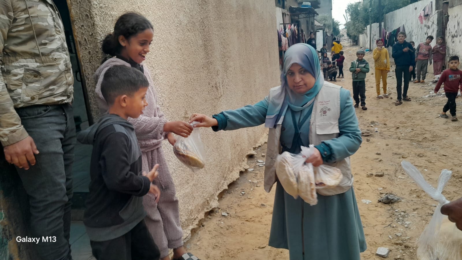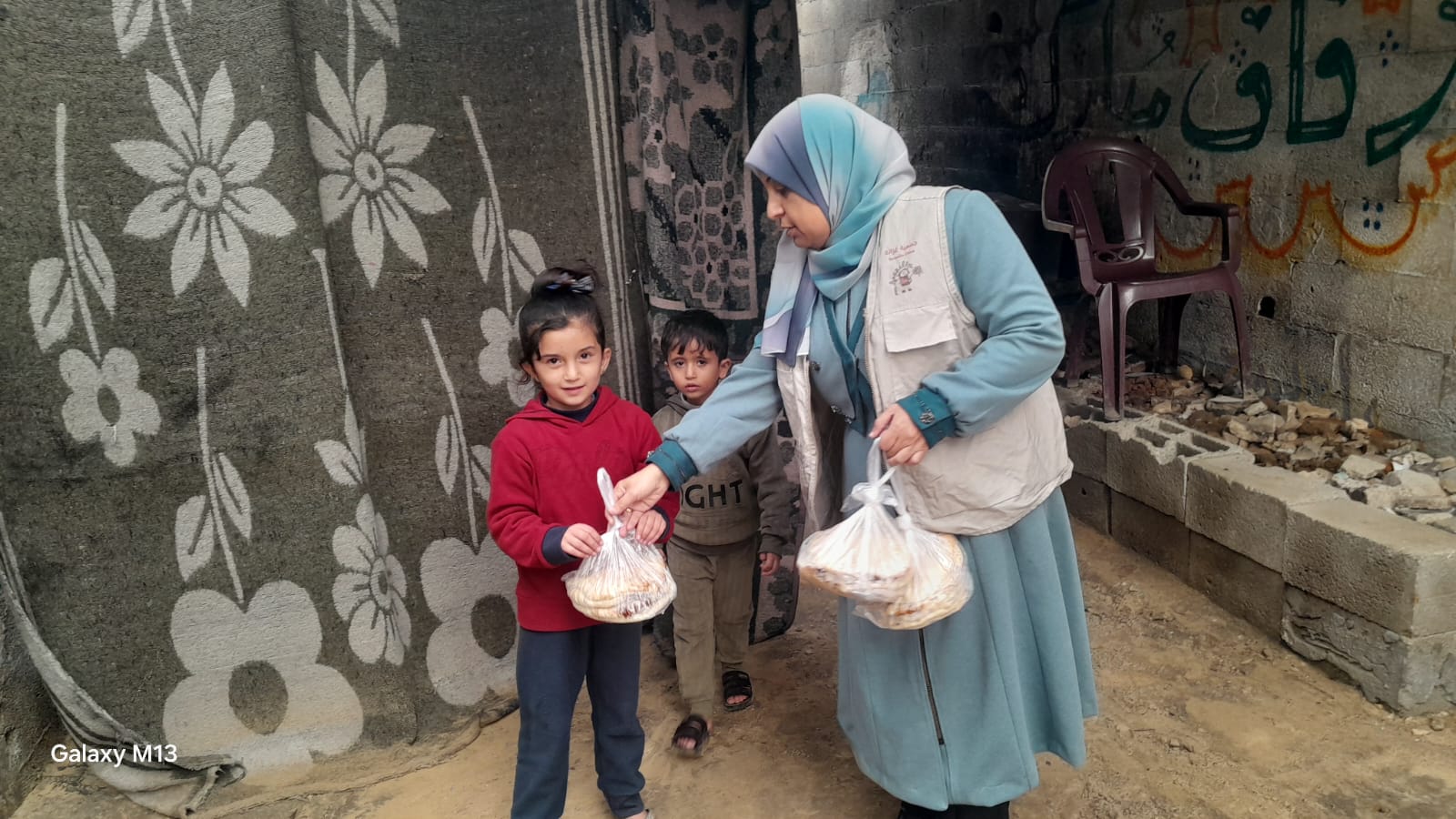Abbiamo fatto 1500 pani che abbiamo distribuito nel quartiere al-Rahma del campo “Nuovo” a Nuseirat .