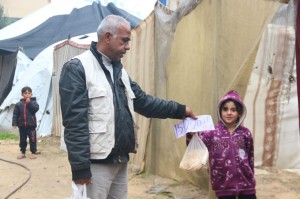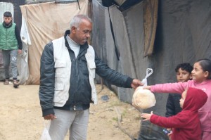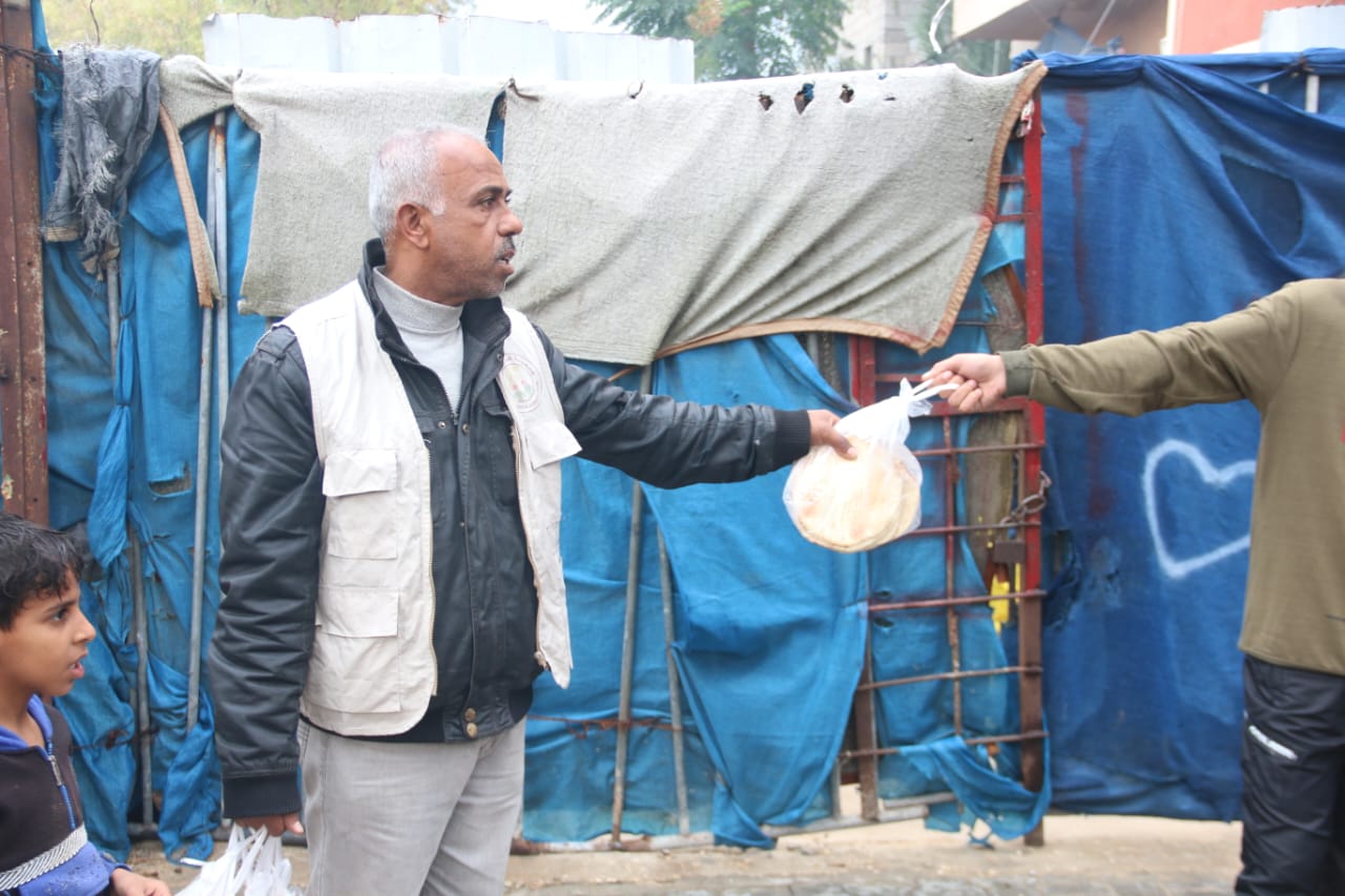 Abbiamo fatto 2000 pani che abbiamo distribuito nel quartiere al-Rahma del campo “Nuovo” a Nuseirat .