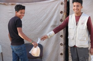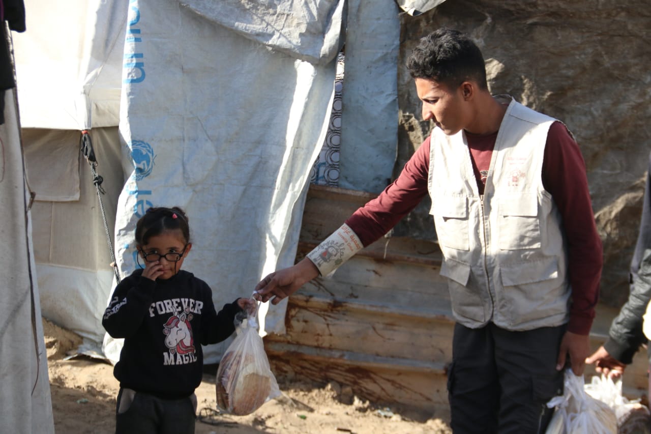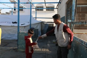 Abbiamo fatto 1.500 pani che abbiamo distribuito agli sfollati che occupano la scuola elementare femminile dell’Unrwa del campo “Nuovo” a Nuseirat .
