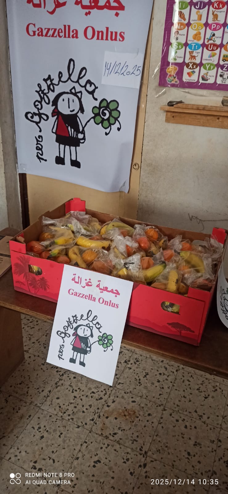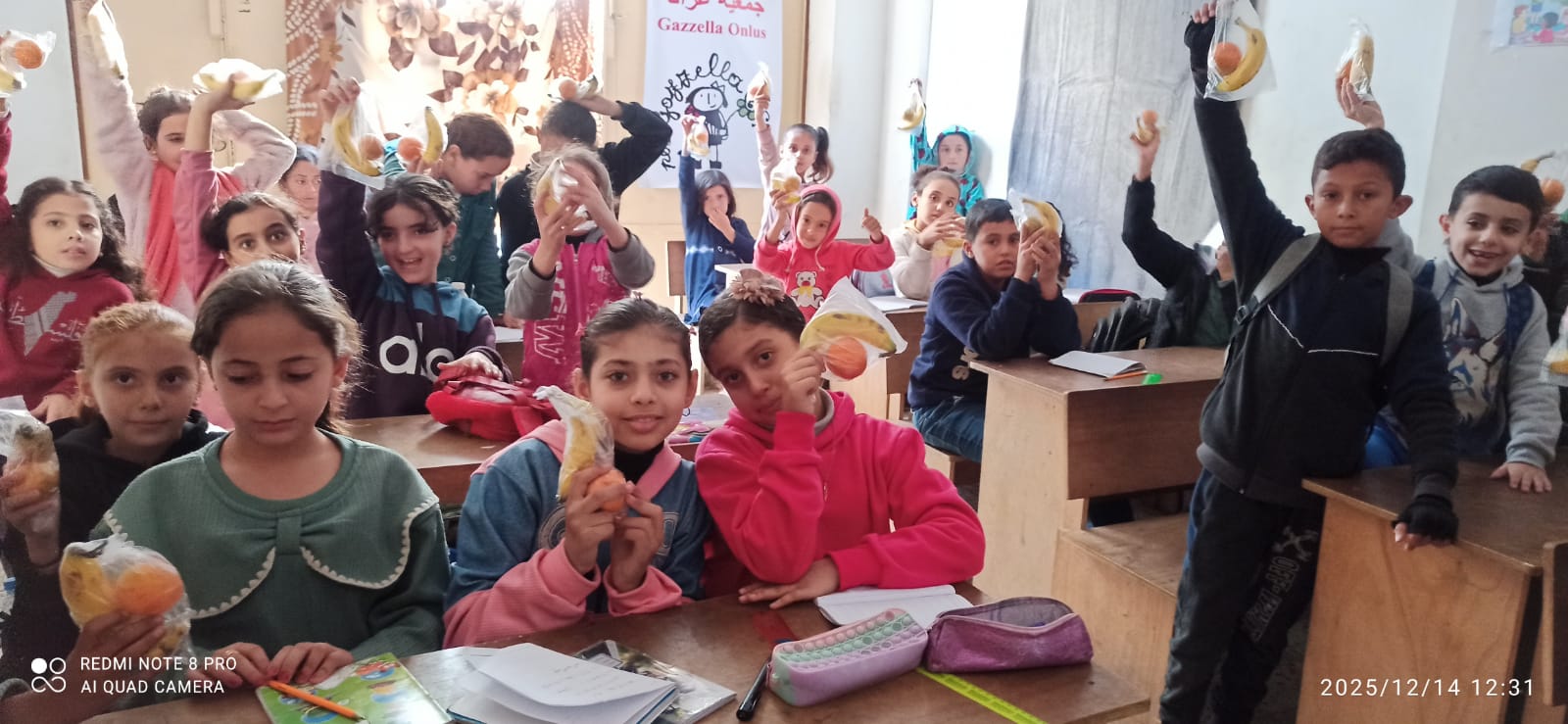 “La Scuola Ghazala a Deir al-Balah, oggi domenica 14/12, ha distribuito frutta ai bambini, nell’ambito dei suoi sforzi per sostenere i bambini, promuovere la loro salute e portare un sorriso sui loro volti.”