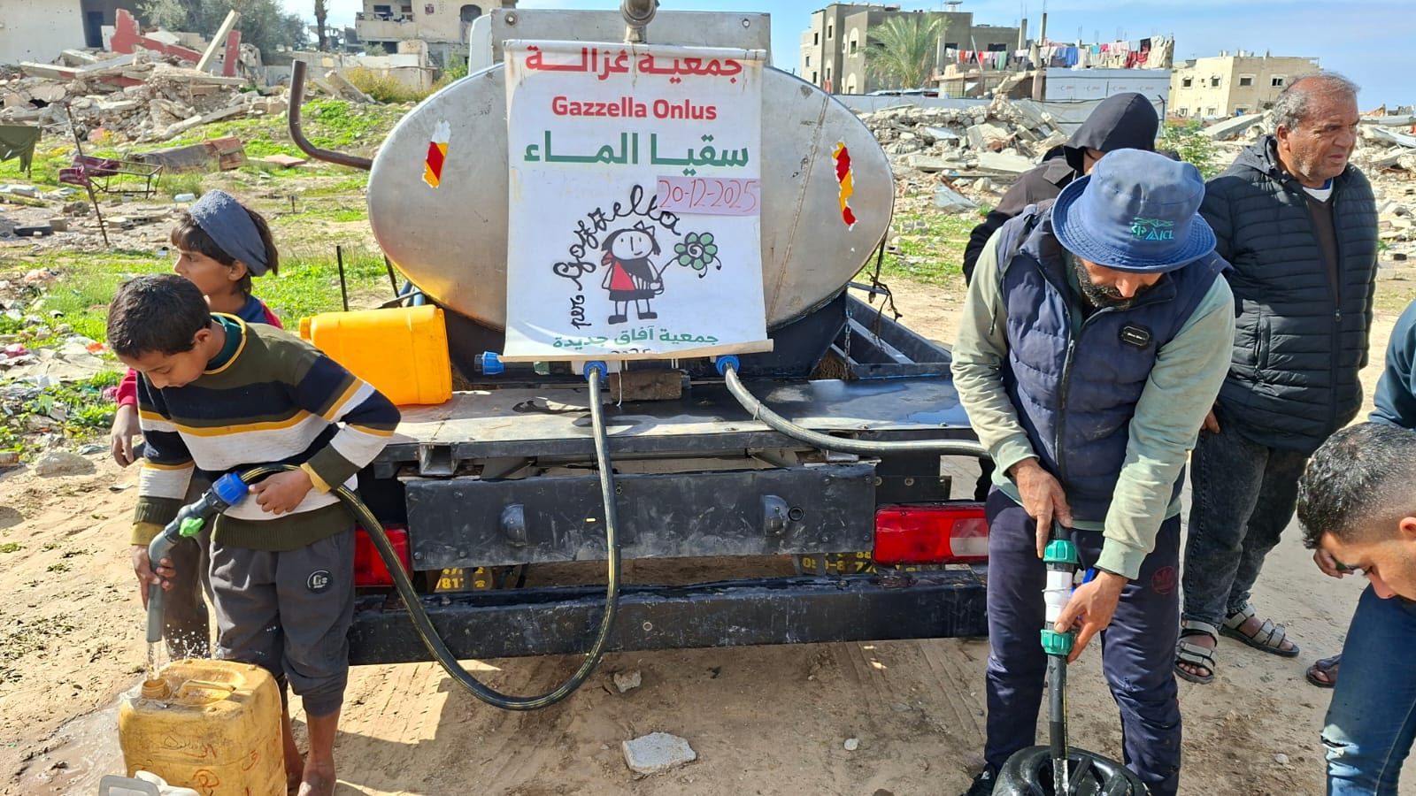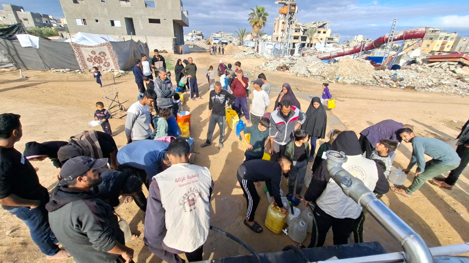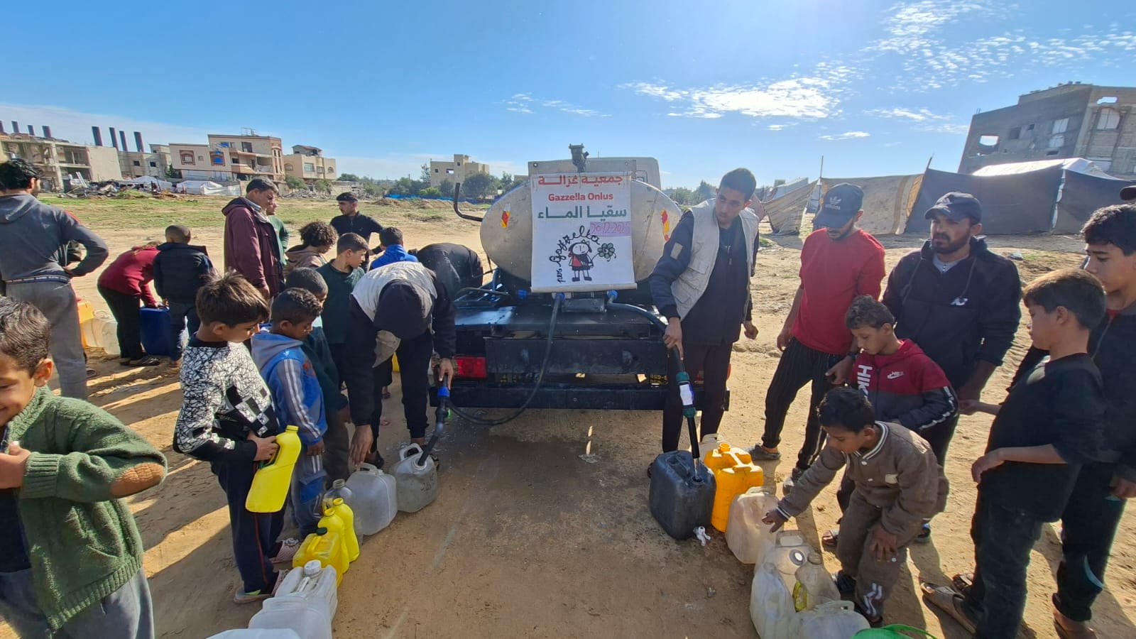Abbiamo distribuito 11.000 litri d’acqua potabile di cui 3.500 litri nellazona di al-Mufti, 3.500 nella zona di Zu-Nurein e 4.000 al punto di distribuzione davanti alla sede dell’associazione Afaq.