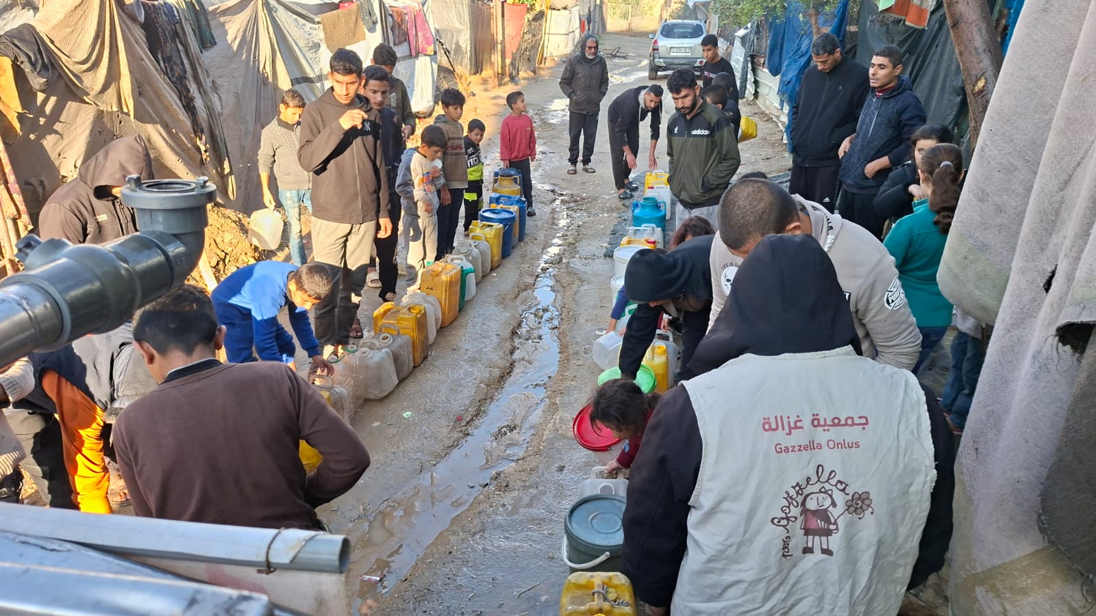 Mercoledì 17/12/25 abbiamo distribuito 10.000 litri d’acqua potabile di cui 3.500 litri nella zona di al-Salhi, 3.500 nella zona di Abu Hujayr e 3.000 al punto didistribuzione davanti alla sede dell’associazione Afaq.