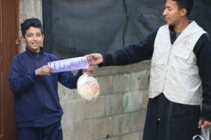 Abbiamo fatto 1500 pani che abbiamo distribuito nel quartiere al-Rahma del campo “Nuovo” a Nuseirat .