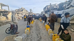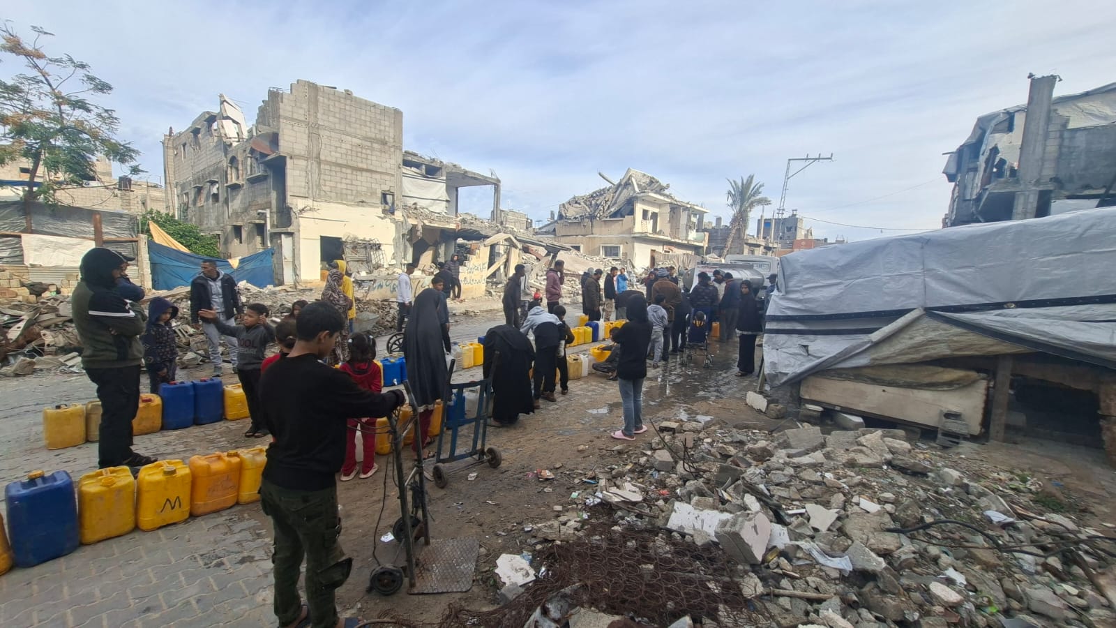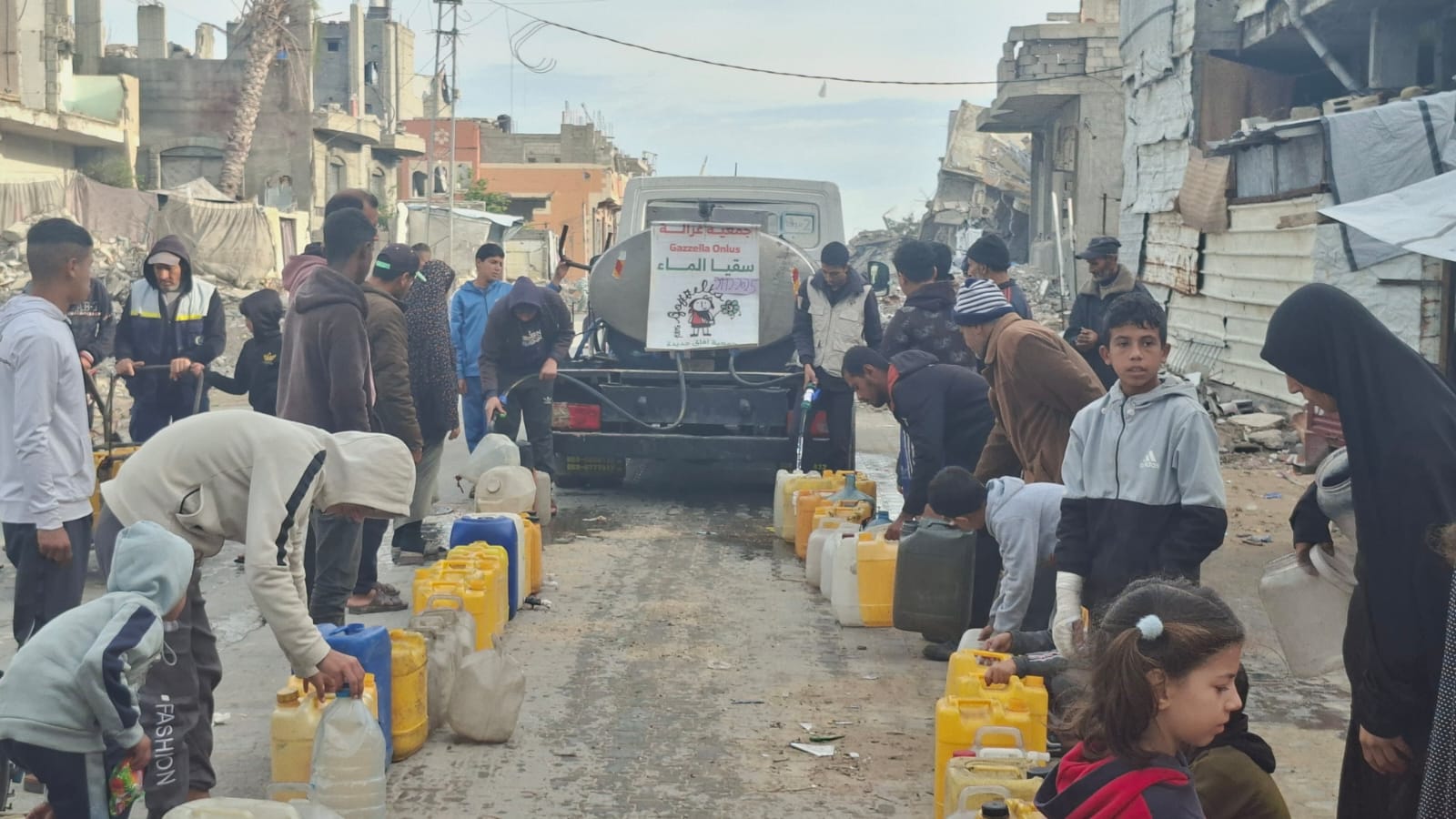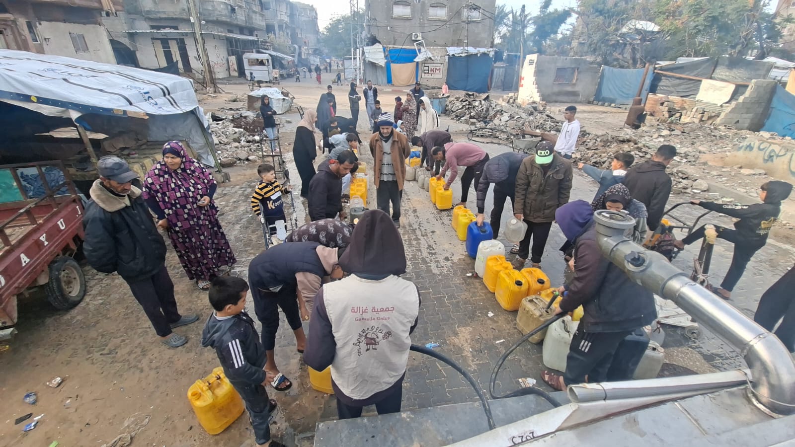 Abbiamo distribuito 6.500 litri d’acqua potabile di cui 3.500litri nella zona di Abu Hazin e 3.000 al punto di distribuzione davanti alla sede dell’associazione Afaq.