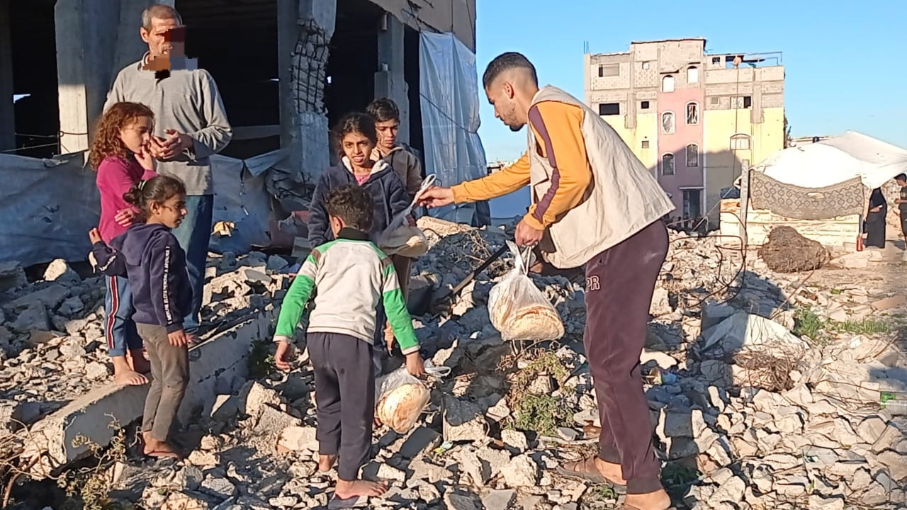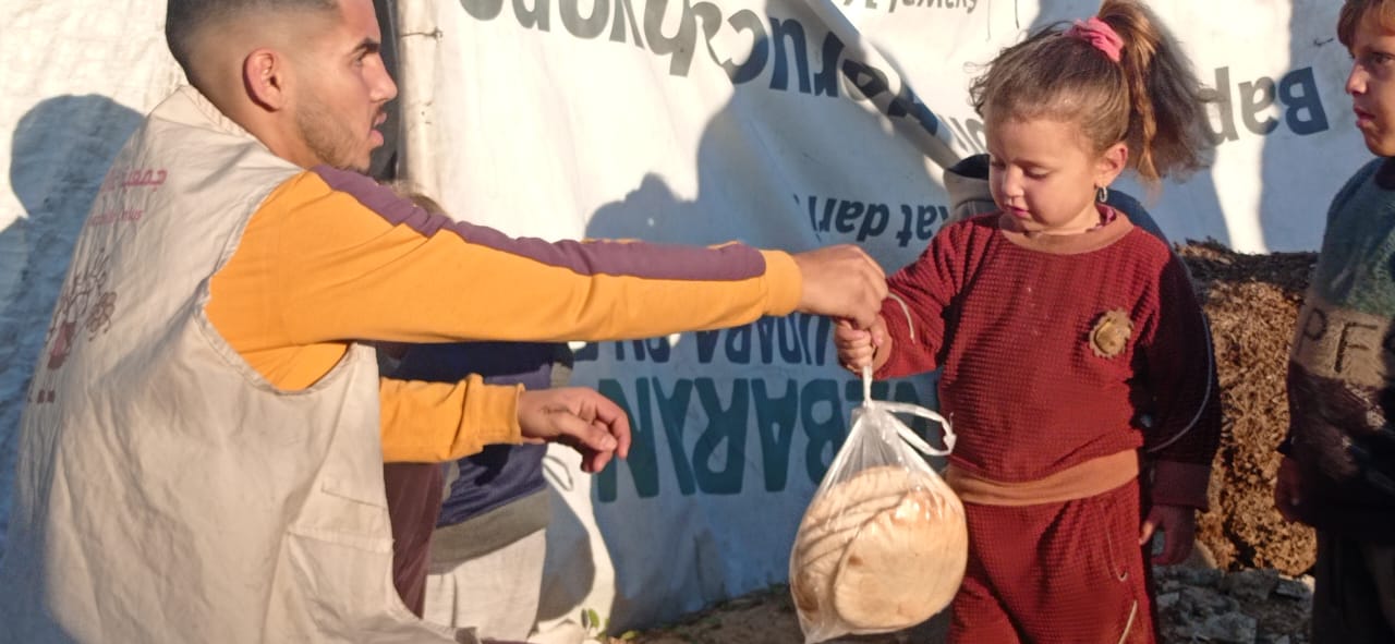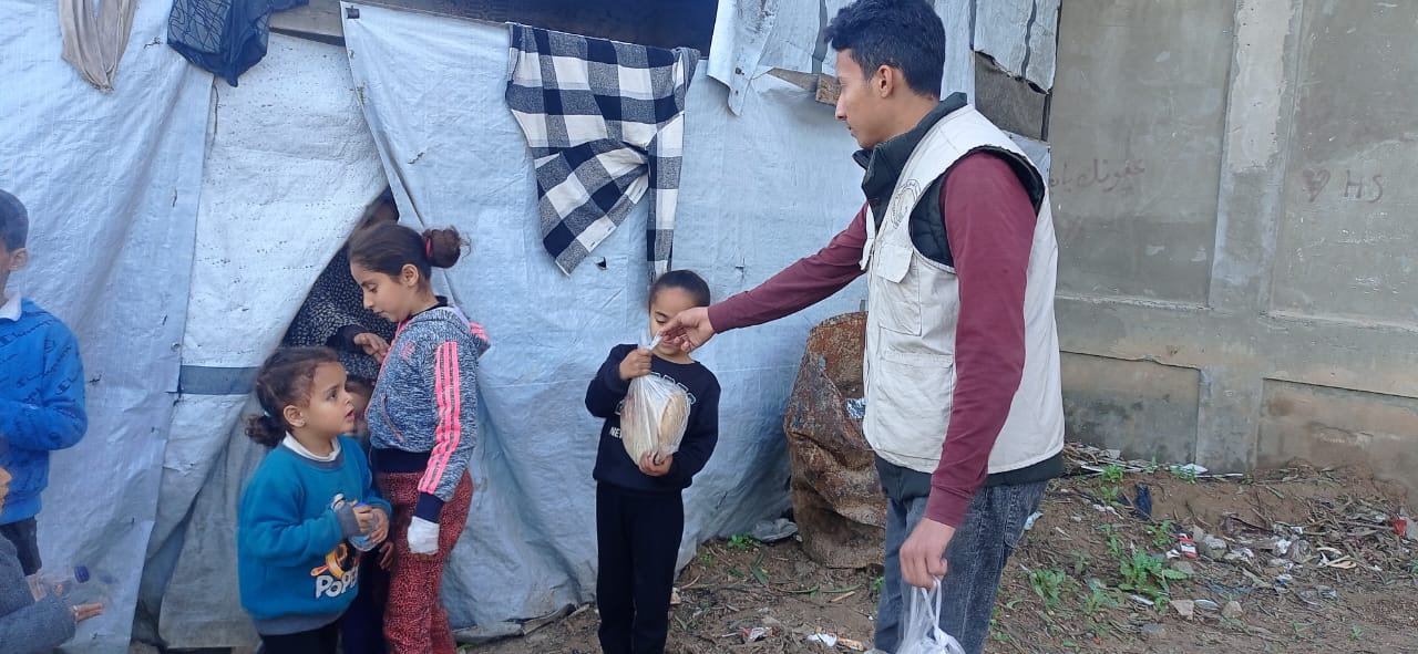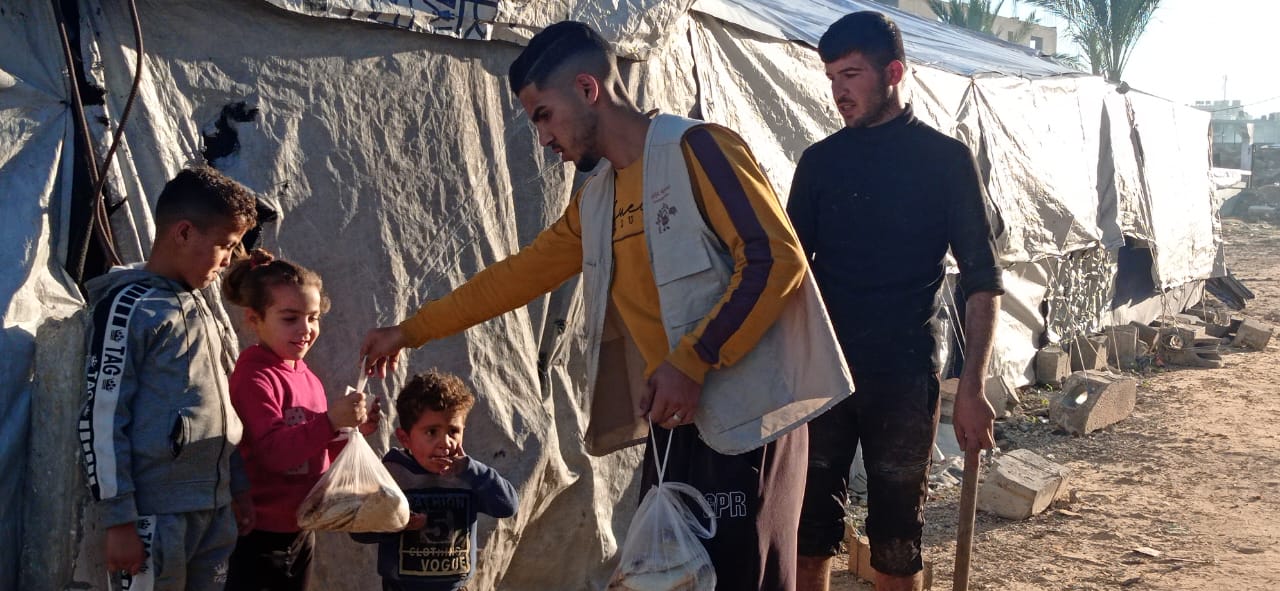 Domenica 21/12/25 abbiamo fatto 1500 pani che abbiamo distribuito nel agli sfollati nella zona di al-Mufti.