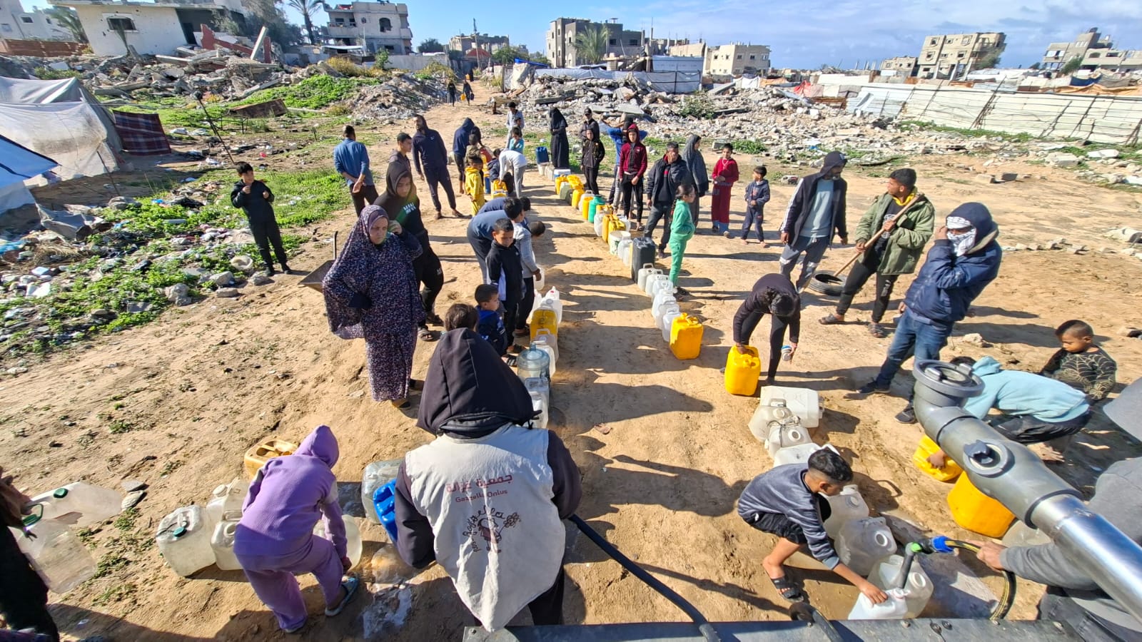 Sabato 27/12/25 abbiamo distribuito 10.000 litri d’acqua potabile di cui 3.500 litri nella zona di Zu Nurein, 3.500 litri nella zona al-Mufti e 3.000 al punto didistribuzione davanti alla sede dell’associazione Afaq.