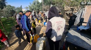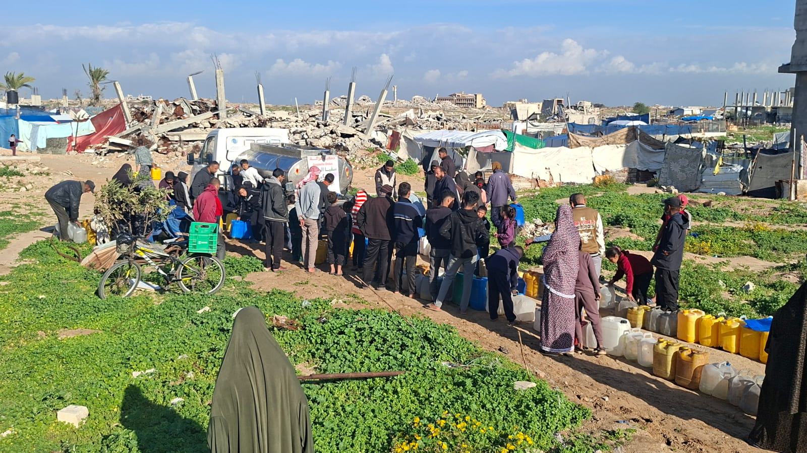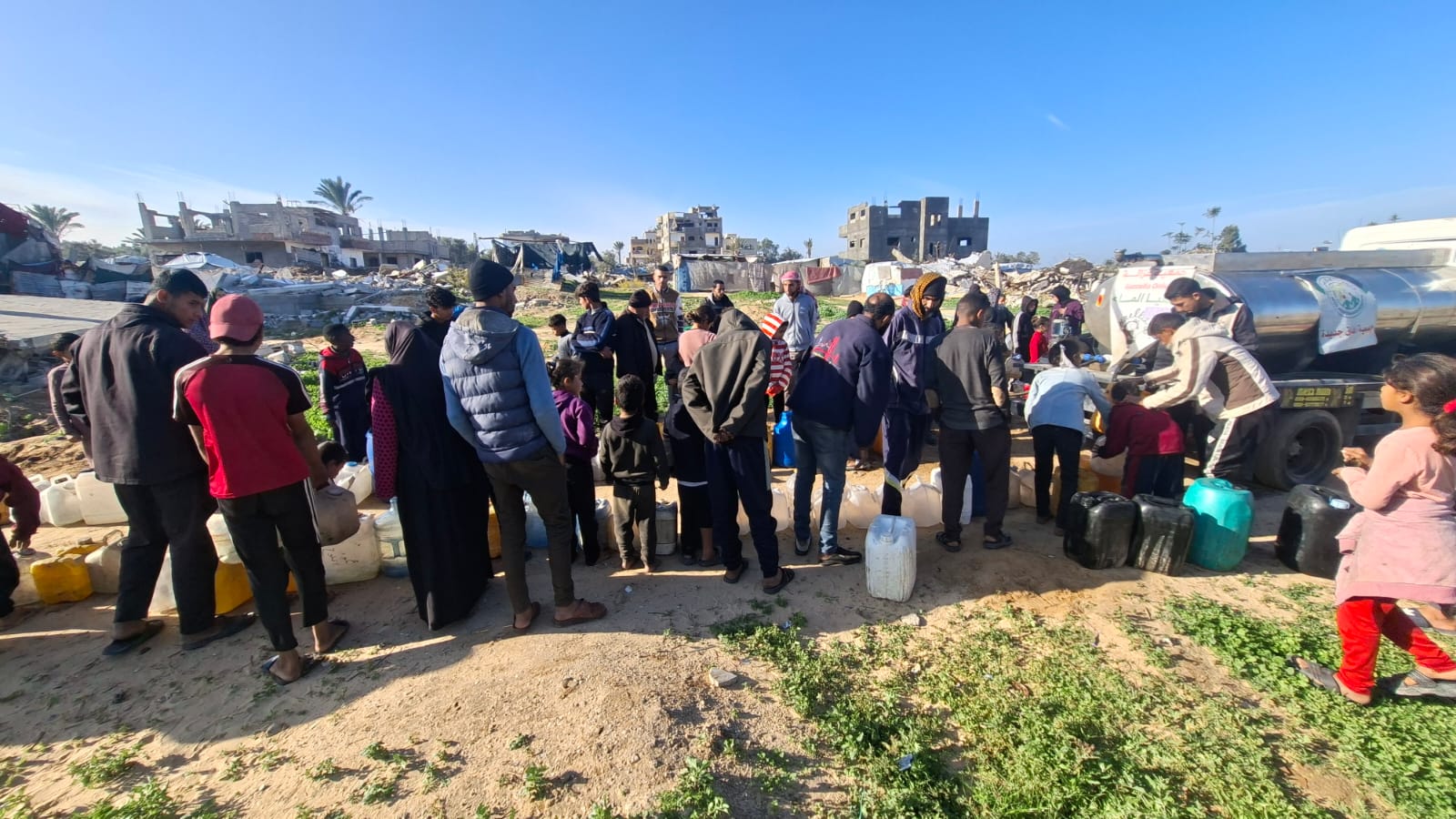 Giovedì I/1/26 abbiamo distribuito 11.000 litri d’acqua potabile di cui 3.500 nella località di Abu Ghouleh, 3,500 nella zona di Abu Muhadi e 4.000 al punto didistribuzione davanti alla sede dell’associazione Afaq.