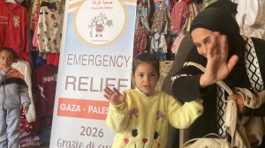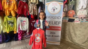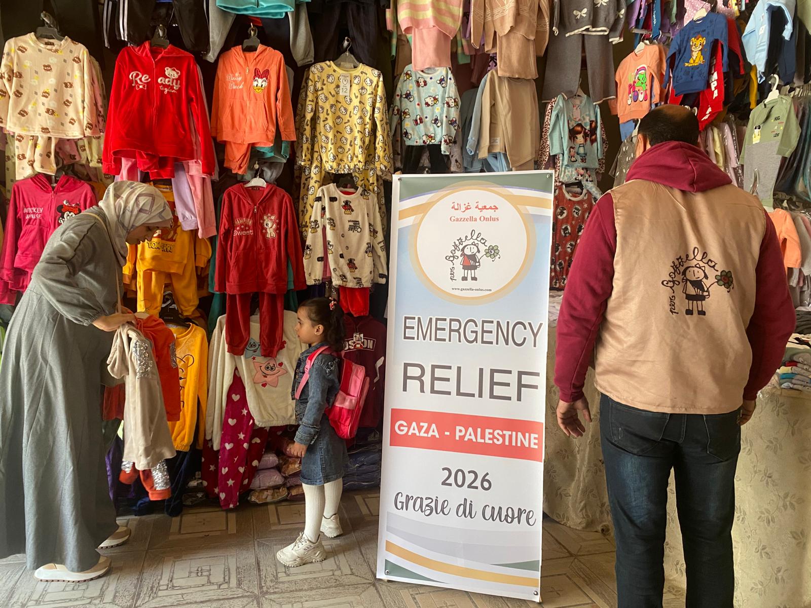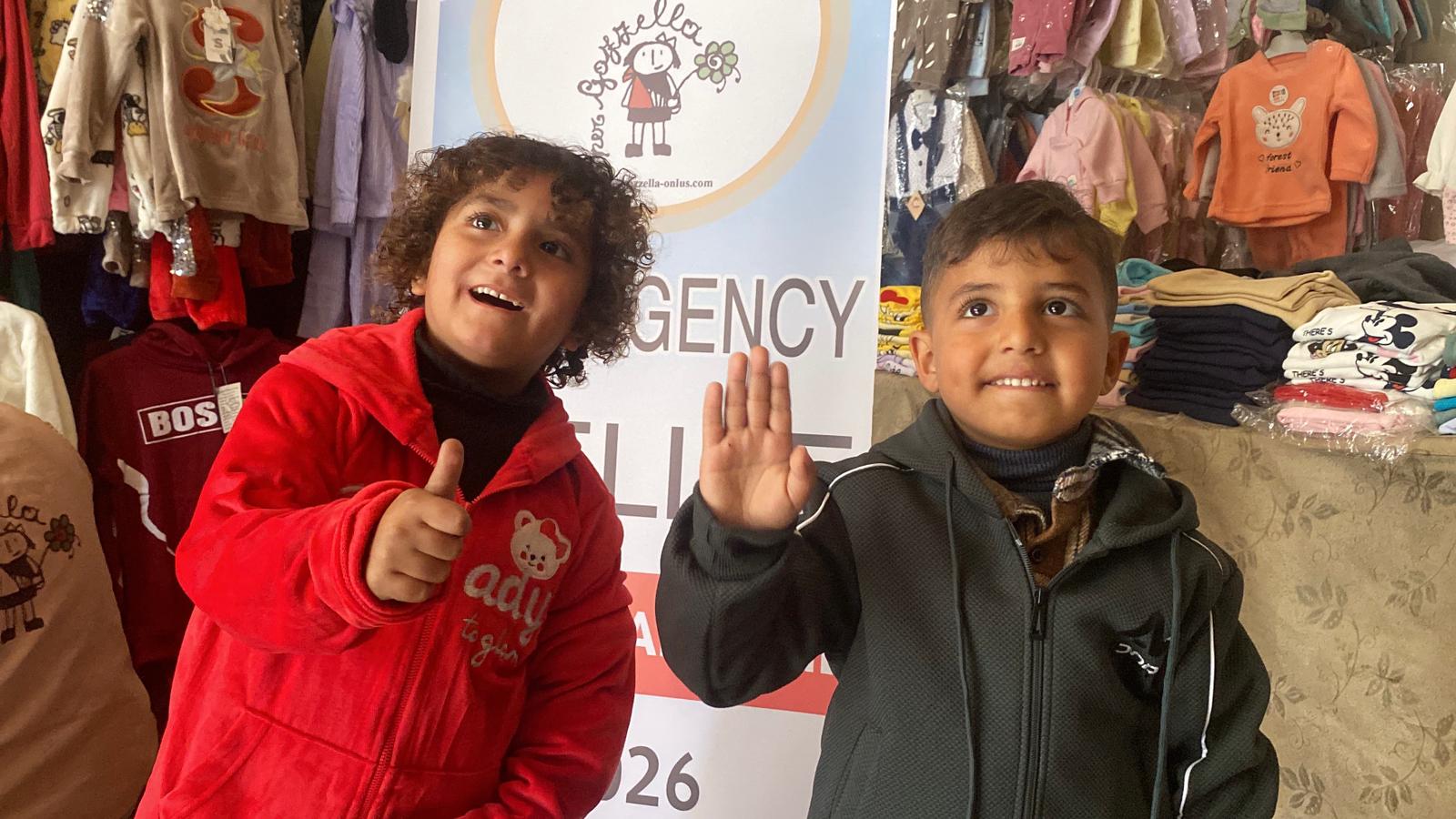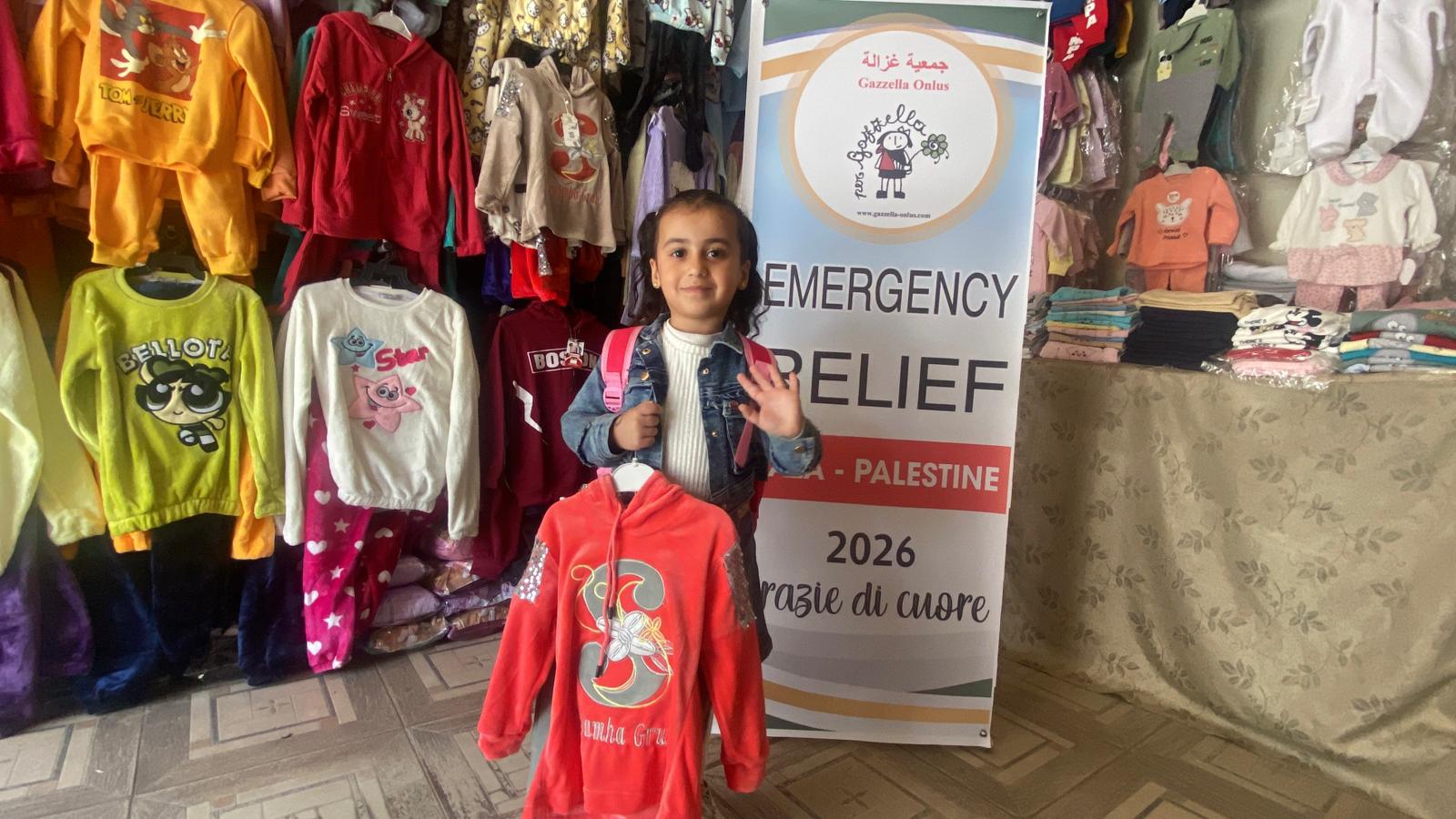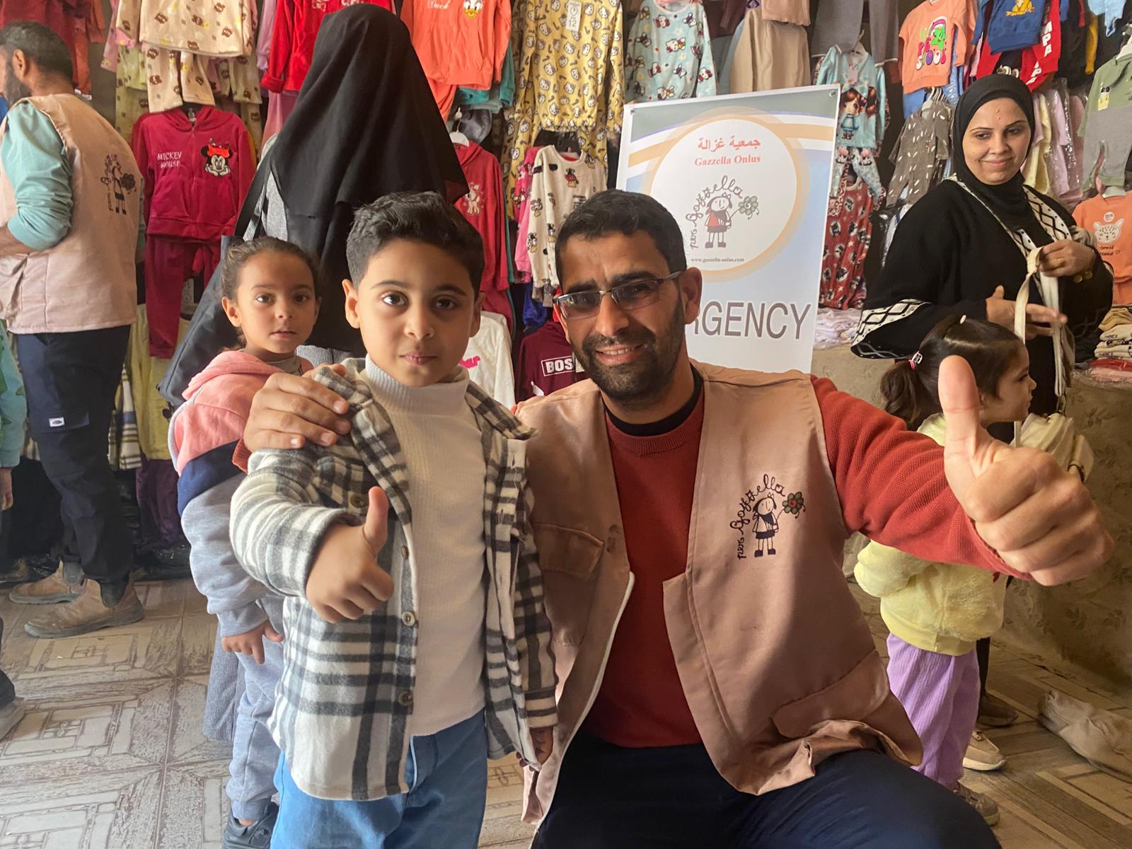 Mercoledì 7/1/26, i volontari di Gazzella a Mawasi hanno distribuito abiti invernali ai bambini della tendopoli.