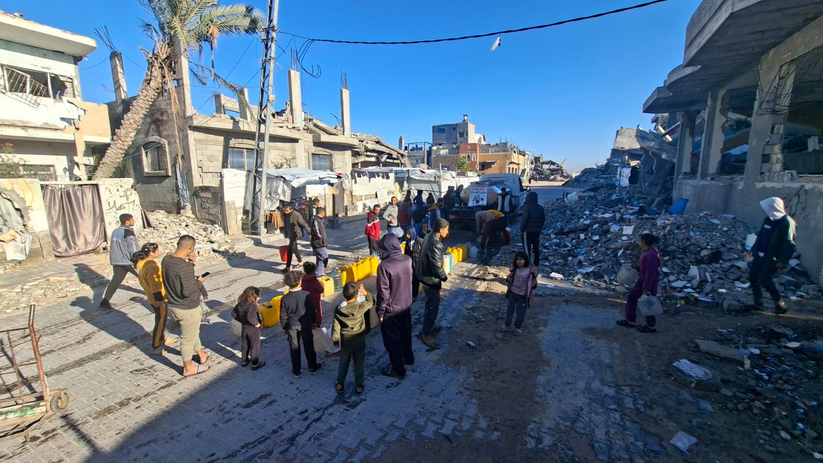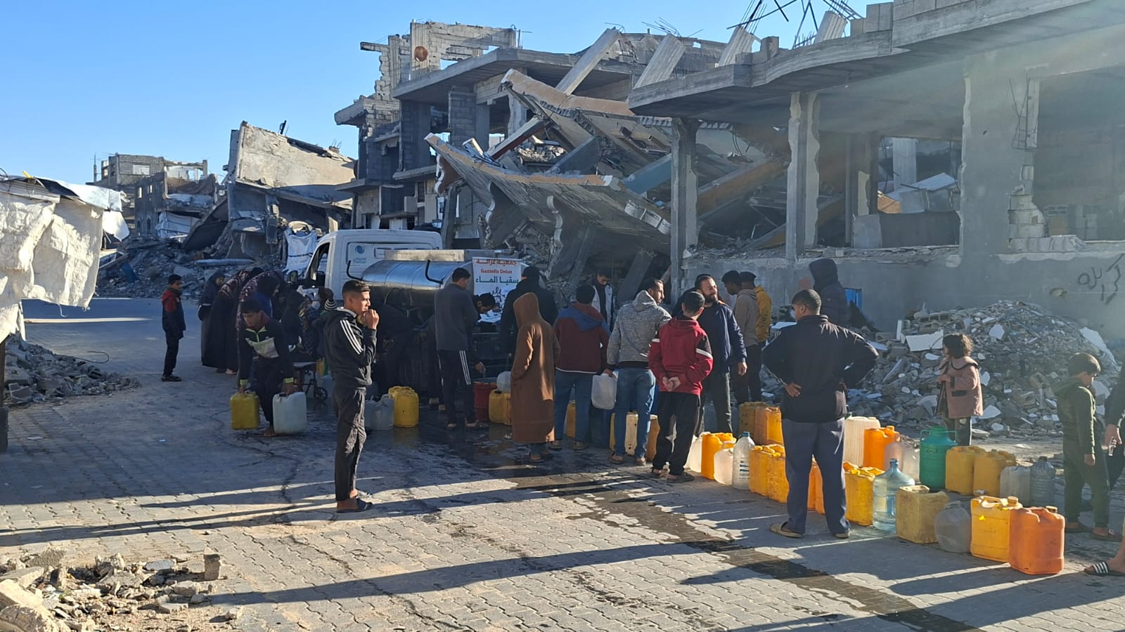Domenica 4/1/26 abbiamo distribuito 7.500 litri d’acqua potabile di cui 3.500 nel campo “Nuovo” e 4.000 al punto di distribuzione davanti alla sede dell’associazioneAfaq.