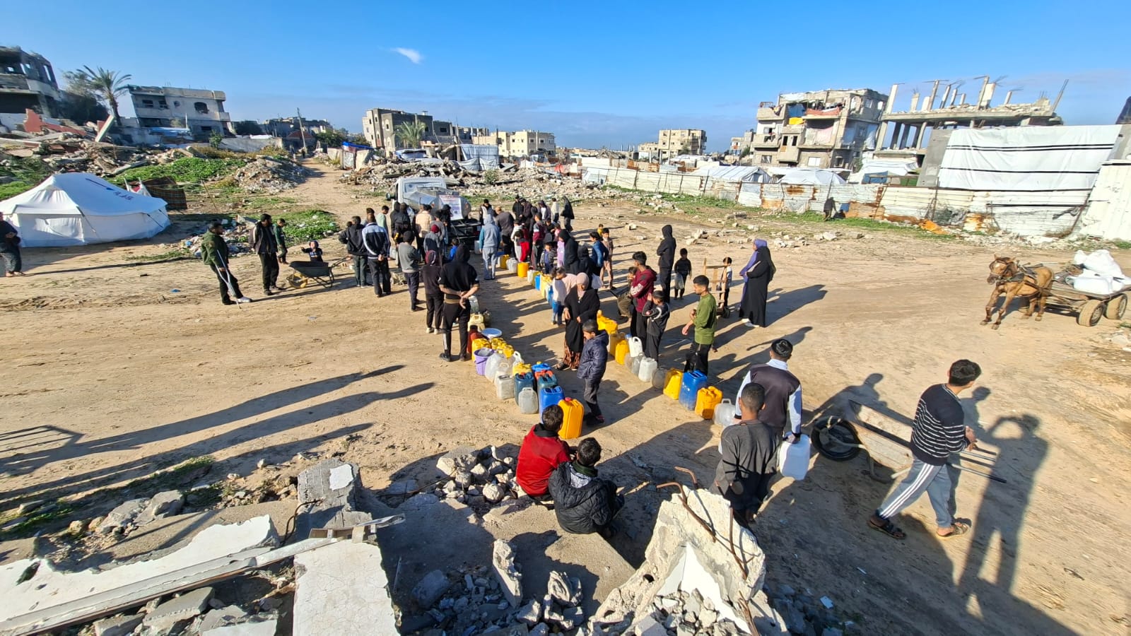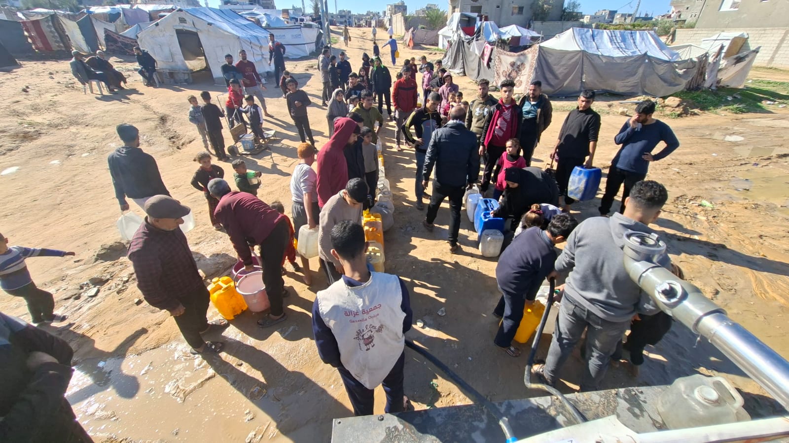 Sabato 3/1/26 abbiamo distribuito 10.000 litri d’acqua potabile di cui 3.500 nella località di Zu Nurein, 3,500 nella zona di al-Mufti e 3.000 al punto di distribuzionedavanti alla sede dell’associazione Afaq.